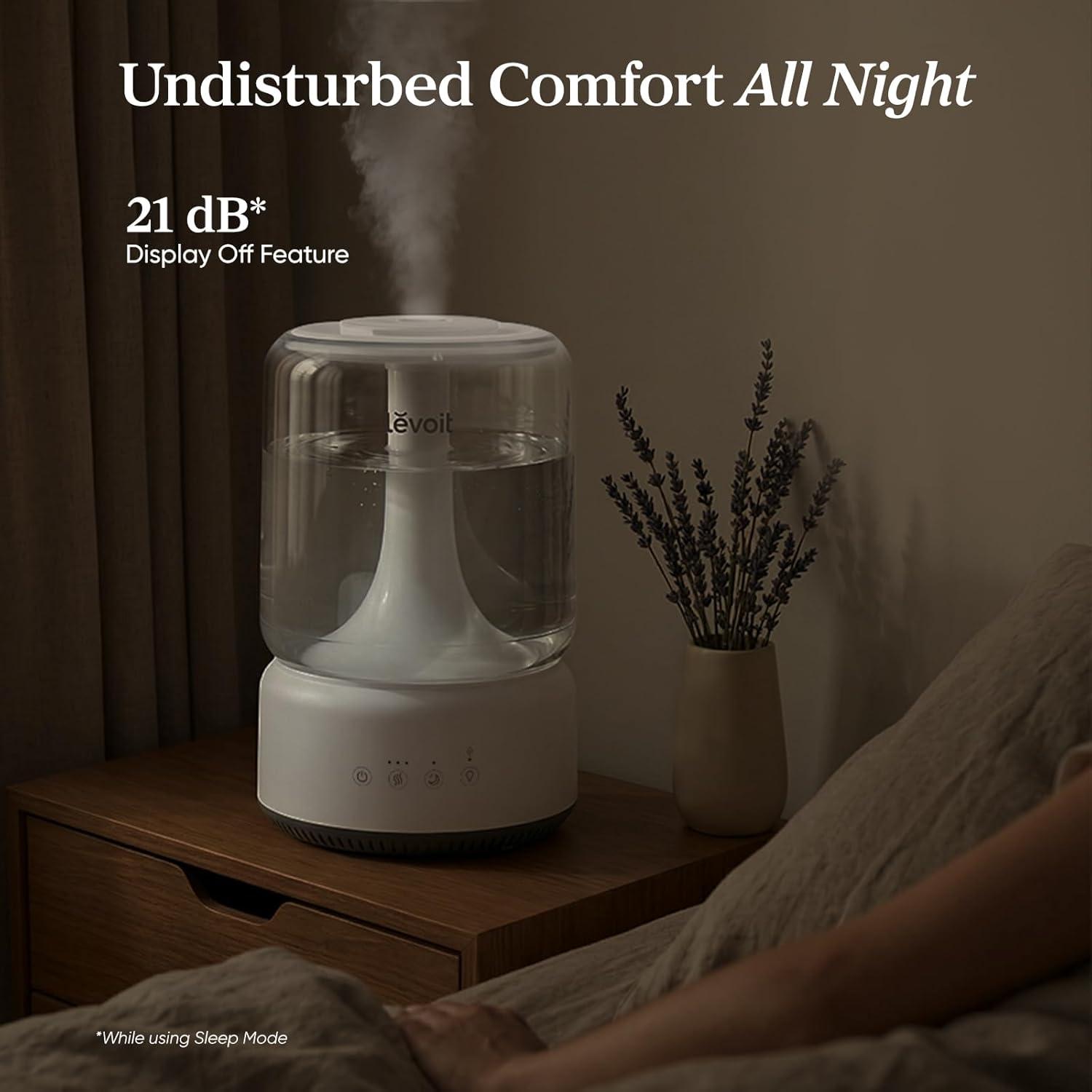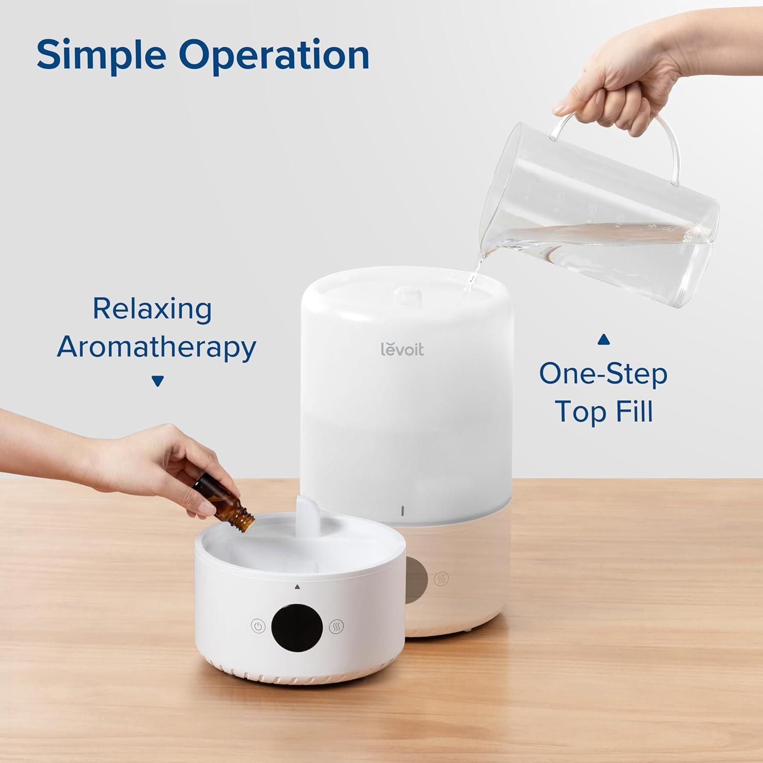LEVOIT Humidifiers for Bedroom, 4.2L Top Fill for Large Room with 42H Runtime, Dishwasher Safe Design Easy to Clean, 21dB Quiet Cool Mist for Baby, Plants, Night Light, Essential Oil Diffuser, White(White)