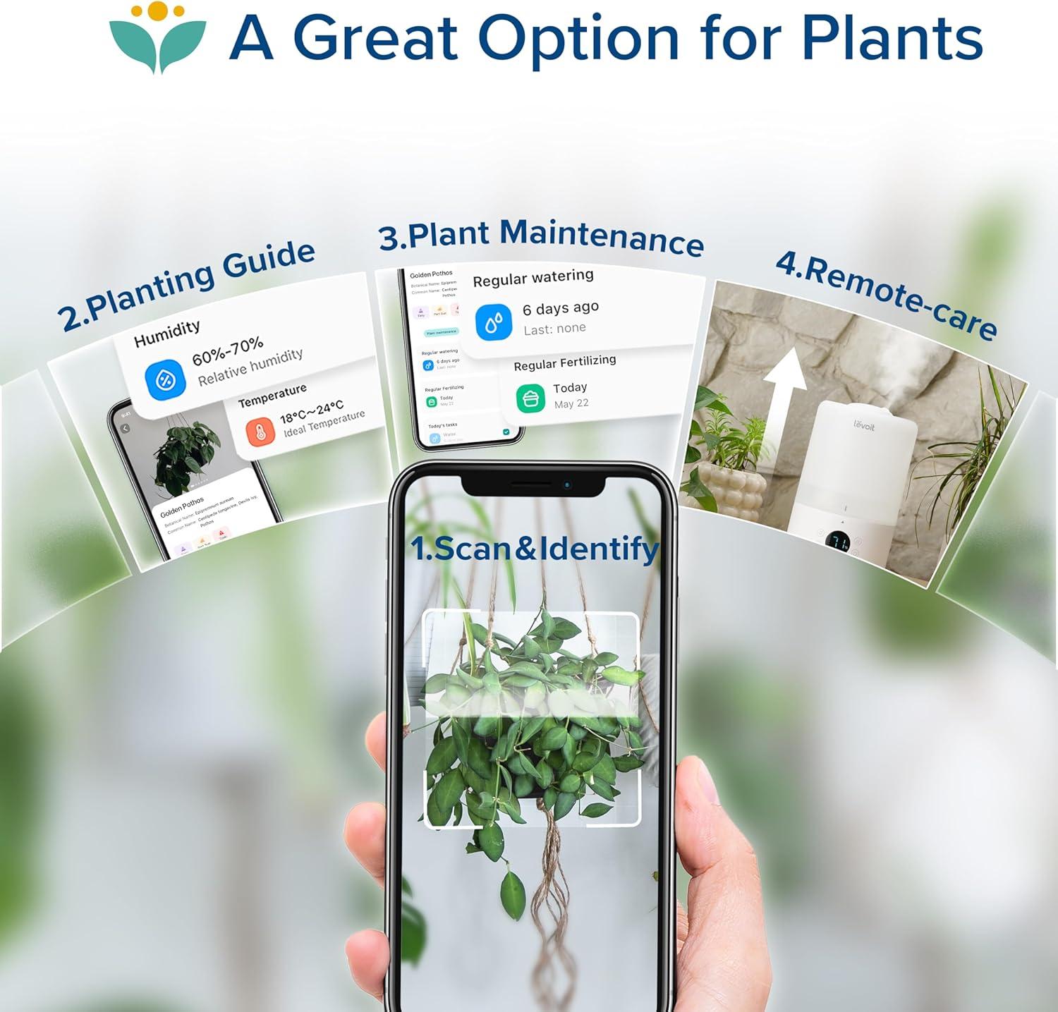 LEVOIT Humidifiers for Bedroom, 4.2L Top Fill for Large Room with 42H Runtime, Dishwasher Safe Design Easy to Clean, 21dB Quiet Cool Mist for Baby, Plants, Night Light, Essential Oil Diffuser, White(White Smart)