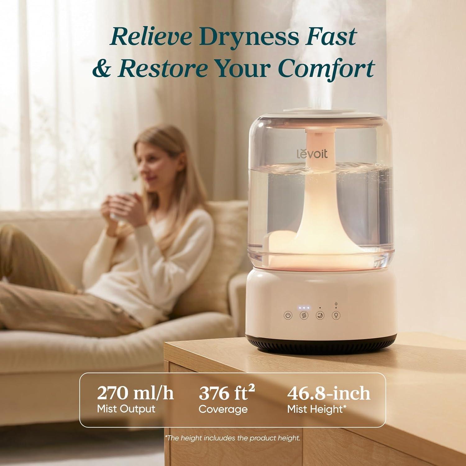 𝑮𝒐𝒐𝒅𝒃𝒚𝒆 𝑫𝒓𝒚 𝑨𝒊𝒓, 𝑹𝒆𝒔𝒕𝒐𝒓𝒆 𝑪𝒐𝒎𝒇𝒐𝒓𝒕: 270 mL/h mist output, 376 ft² coverage, and 46.8-inch mist height* to powerfully humidify your room and relieve dryness fast. *The height includes the product height.