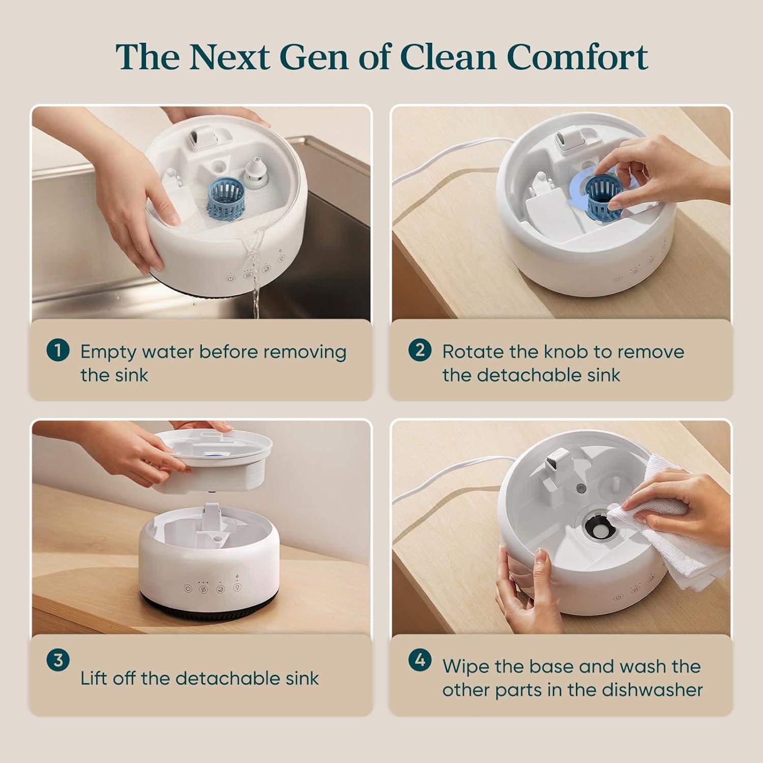 𝑬𝒂𝒔𝒚 𝑪𝒍𝒆𝒂𝒏𝒊𝒏𝒈: Specialized detachable sink design keeps the base dry for easy cleaning. A simple wipe of the base, then clean the rest in the dishwasher